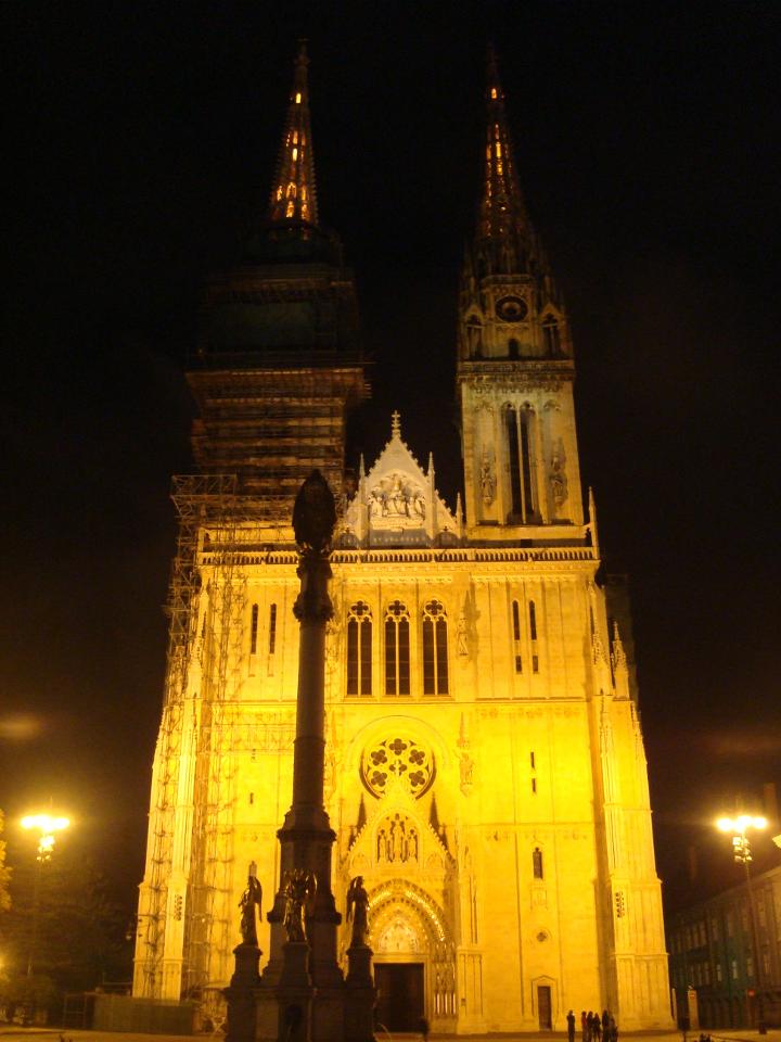 Upon first impression, I didn’t think that I was going to much care for Croatia. The slow train, the infuriating encounter with the bitchy concessions lady at the smoke-filled train station, the dreary weather, and the fact that we couldn’t find anything decent to eat in the area after eating only oranges and a can of Pringles that day all conspired to make me feel like taking the train straight on through to Serbia. We had a train layover in Zagreb, a city that we knew nothing about. When the weather cleared up and we were able to go for a lengthier walk, we were astounded by what we saw and our attitudes did a 180. The center of Zagreb is like a little Paris or Rome except for not as expensive. There were little bars and cafes everywhere you looked and the employees were beginning to get ready for the Friday night crowd, setting out tablecloths and chairs. The majestic old buildings and museums were lit up and the main square was crowded with people meeting up for the evening. As we wandered the streets enchanted with the surroundings I felt that perhaps I was falling a little bit in love with Croatia. On the walk back everything, even the train station, looked lovelier. As we waited for the night train, we tried to figure out what kind of accommodations we were going to have. We had paid a pretty hefty sum for the supplement, and I was convinced we were going to have a private double bunk. Adam was more cautious and thought we would probably only get a 6 bunk cabin and have to share with other people. I reminded him that that was the worst case scenario, and even then, who cares? We would have a bunk to stretch out in and sleep for the 9 hours it would take to get to Split. As it turned out, we would have neither of these things.