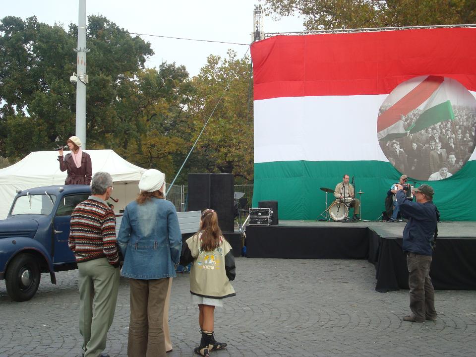 What I love about Hungary is that it is so delightfully weird. We stumbled across a festival celebrating The Revolution of 1956. Since we knew nothing about The Revolution of 1956, it was a bit confusing. The area was fenced off, but there was no entry fee. A sign posted at the gate, the only one translated into English, warned that you entered the area at your own risk as if perhaps another revolution could break out at any minute. The small area was filled with 1950’s era tanks, trucks, and buses. There were several exhibits in Hungarian that we had to bypass, but we did watch with relish the lackluster reenactment of the revolution where people dressed like extras from Les Mis tentatively shuffled to victory. Well, not victory exactly since the revolution was eventually crushed, but victory for the moment. The best and weirdest part was the woman gaily dressed in a winter coat, scarf, and a jaunty beret with a pom-pon, standing in the back of an old military truck singing Hungarian songs from the 1950’s in a sultry voice while a two-piece band listlessly accompanied her from a stage draped with the Hungarian flag.