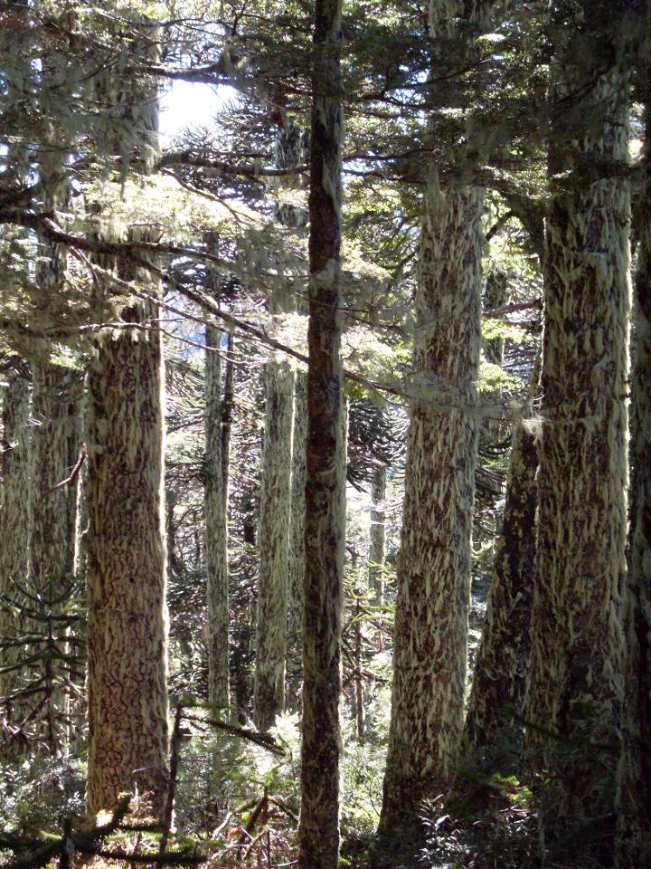 But the few scattered monkey puzzles in Bariloche were nothing compared to what we found in the park in Pucon. The lakes on the trail were nice, but nothing compared to some of the lakes we had seen so far. That is the problem with hiking so much—you start to be unimpressed by things that you should be impressed by. But the monkey puzzles…they grew in huge forests on the hillsides and along the trail. Walking into a forest of them makes you feel like you are on a planet like Endor and you expect an Ewok to grab onto your leg and start shouting at you in Ewokese. Many of the trees were hosts to a neon green moss that made all of the trees look like they had been silly stringed. When we got back from the hike and I realized how many pictures I had taken of the monkey puzzles, I realized that my fascination may have been bordering on obsession.