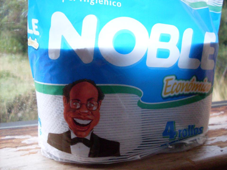 I was standing in the bedroom looking at the package of toilet paper that we had bought. I called out to Adam who was standing in the other room, “Why is there a black man in a tuxedo on this package of toilet paper?”