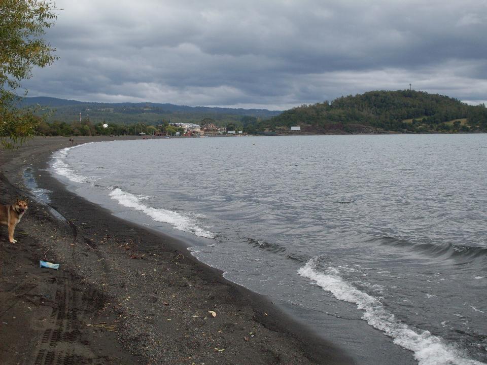 We decided that it was no big deal. We could have lunch there and explore the town. But when we actually got to Osorno we changed our minds. We saw that the reason that Osorno was not listed in the Chile guidebook was that there is nothing to see in Osorno and it’s not particularly picturesque. Since we had arrived with plenty of time to catch the noon bus, we thought it would be better to take the earlier bus and then have some time to explore Pucon, take care of some business on the internet, and do some grocery shopping. The cabin we had booked was about 30km from the town, and the owner was going to pick us up at 7:00, so we would have a couple of extra hours to spend in Pucon. That would have been a great plan. But…